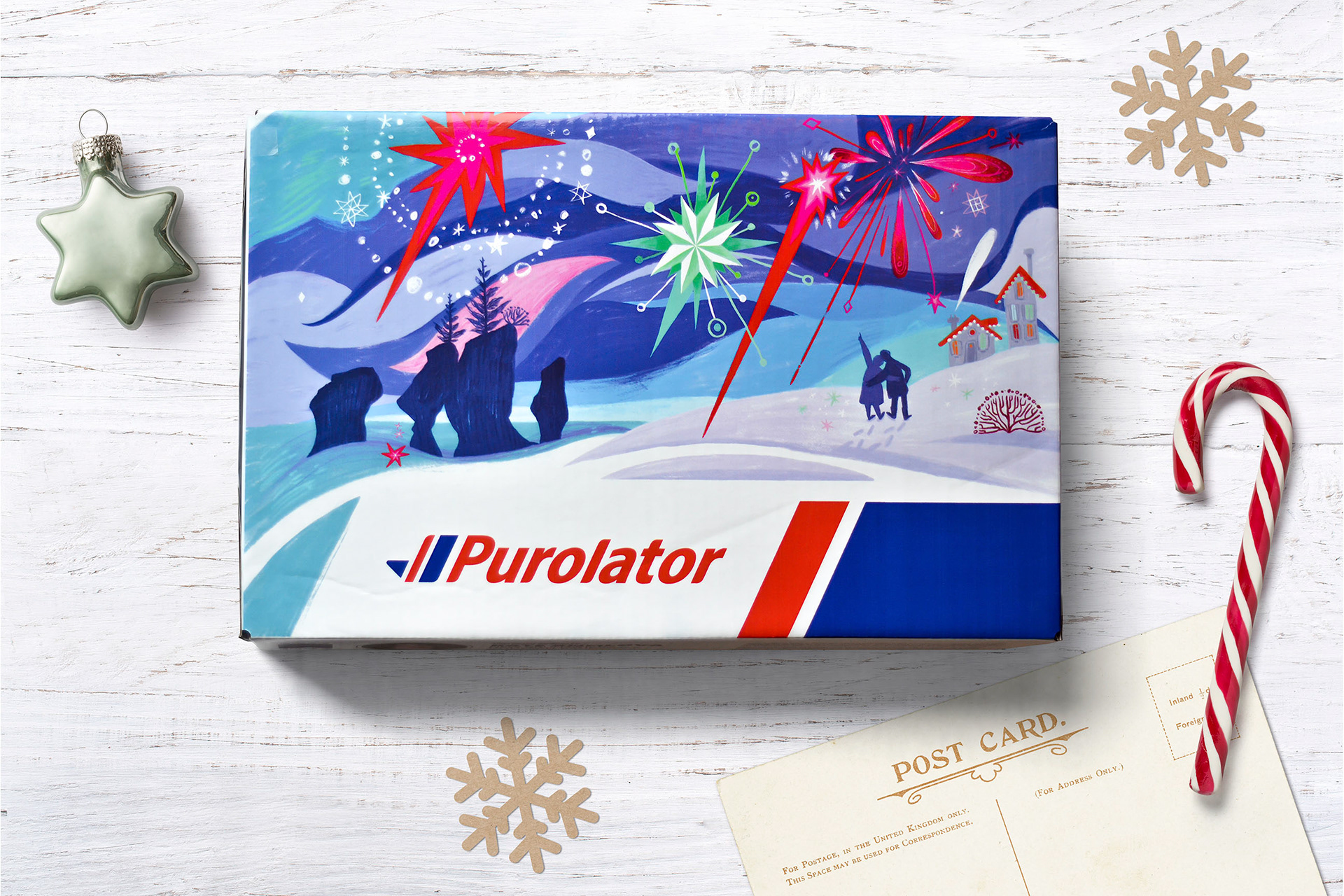 Canadian courier Purolator invited thirteen illustrators from across Canada to design Christmas gift boxes. Each artist created an illustration inspired by the nature and culture of one province or territory.